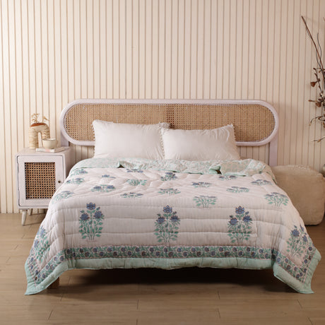 149,00 €Grundpreis /Nicht verfügbarSteppdecke Blume Weiß Türkis 270 x 240 cm