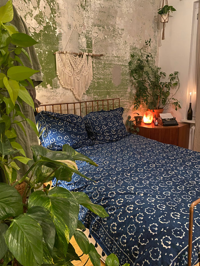 Indigo Bettwäsche mit traditionellem Blockdruck Muster