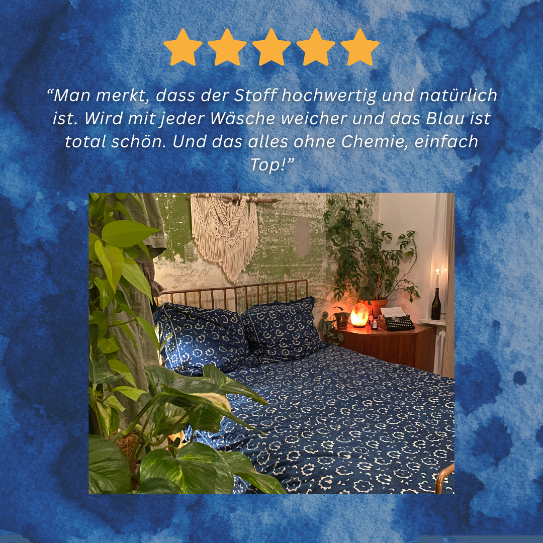 Bettwäsche Indigo Blockdruck Blume - 135x200 cm + Kissen