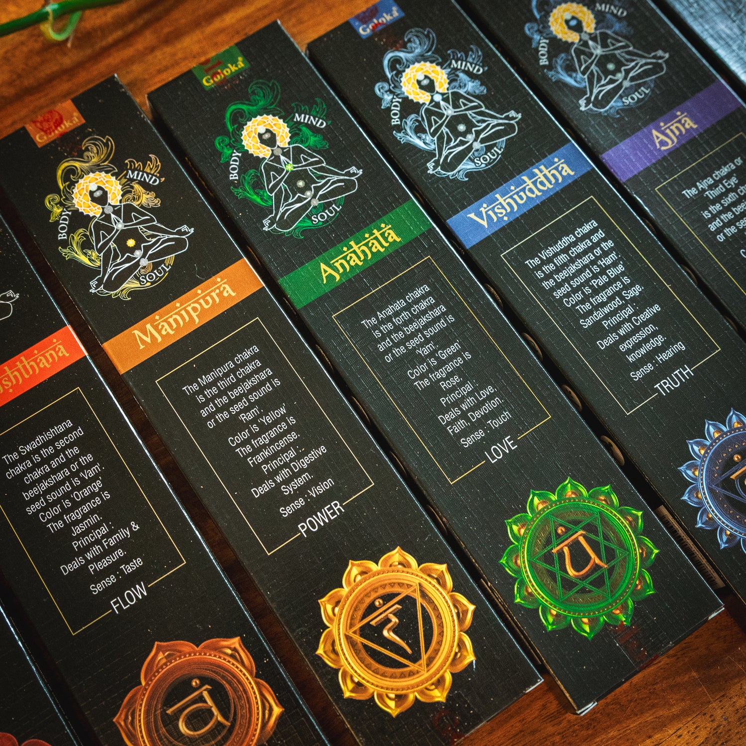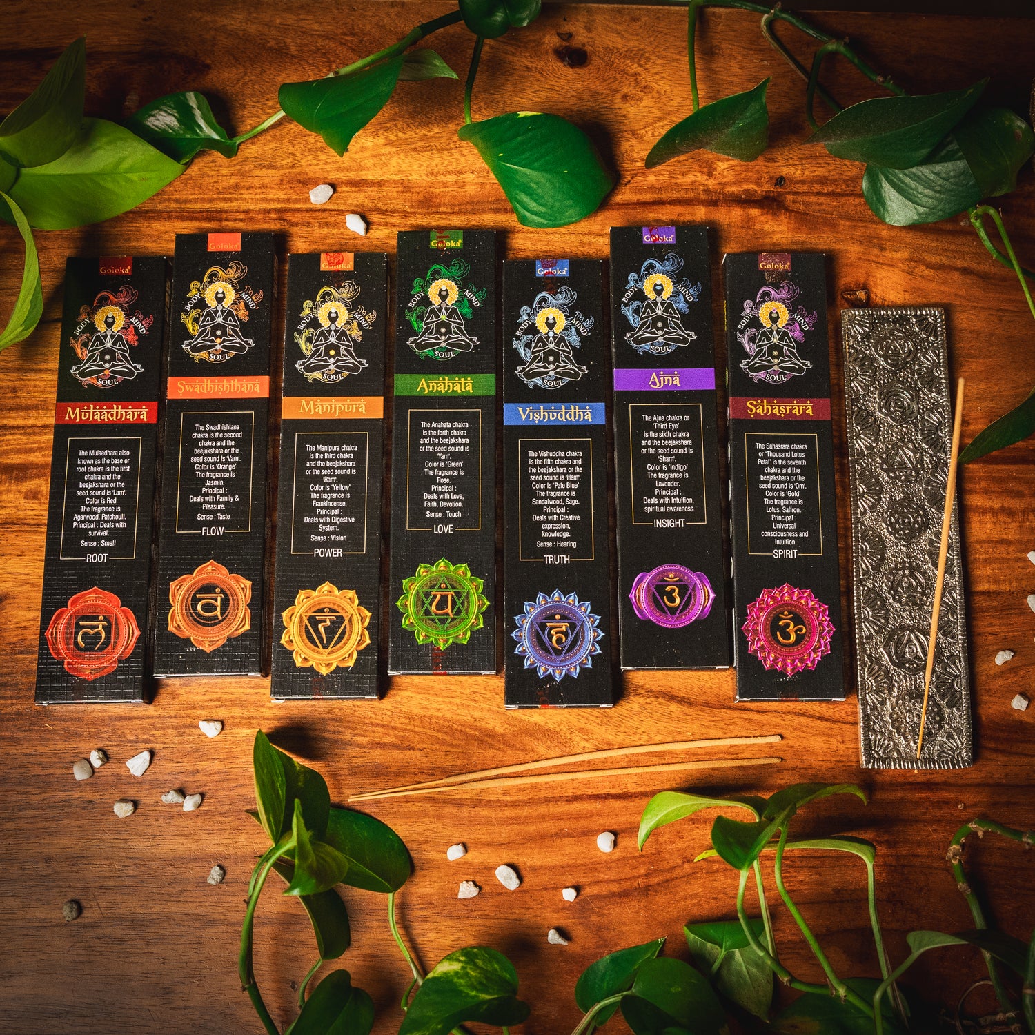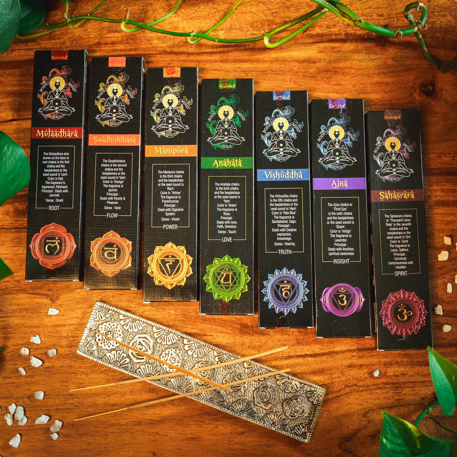 Goloka 7 Chakren Räucherstäbchen Set – ausgewogene Düfte für jeden Energiepunkt