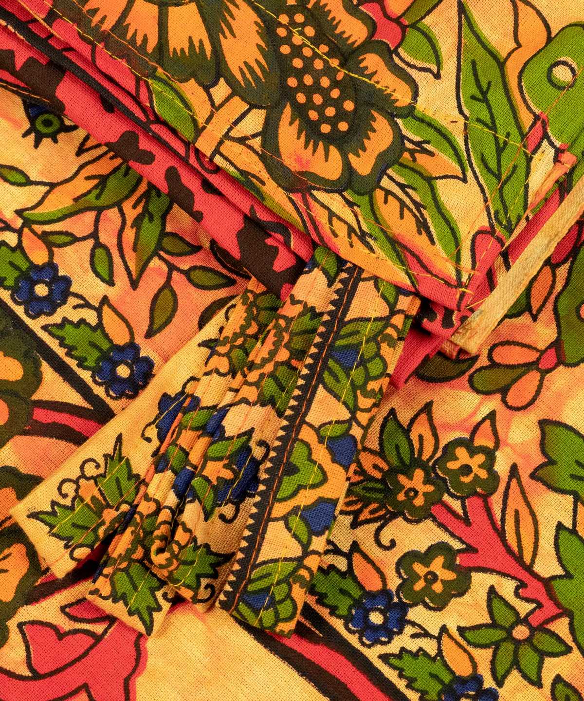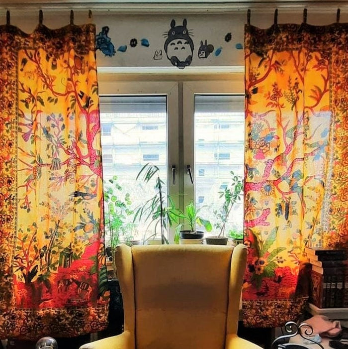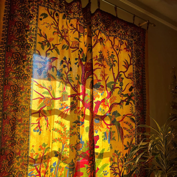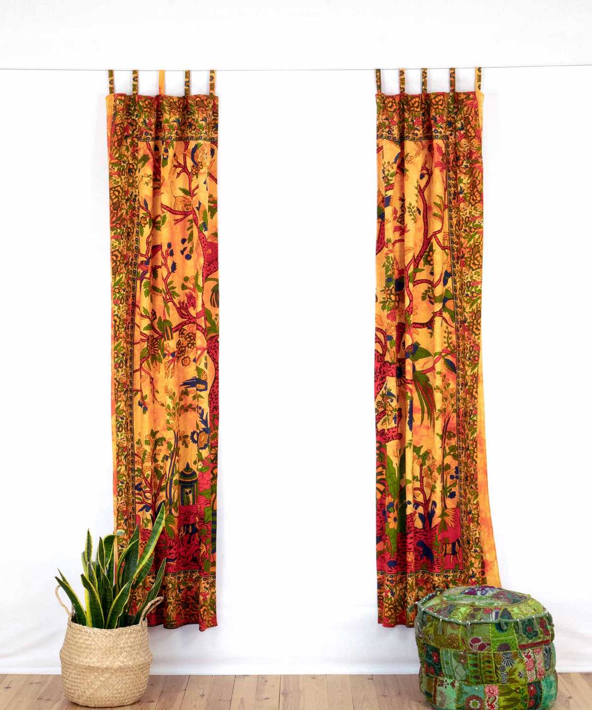 Der warme Vorhang Lebensbaum Batik Orange bringt mit seinem lebendigen Orangeton und dem symbolträchtigen Lebensbaum-Motiv Wärme und Charakter in jeden Raum. Das kraftvolle Orange und die traditionelle Batik-Technik verleihen diesem Vorhang eine besondere Lebendigkeit, die dein Zuhause auf natürliche Weise bereichert. Hergestellt aus weicher Baumwolle und in echter Handarbeit bedruckt, ist dieser Vorhang ein Ausdruck indischer Handwerkskunst.