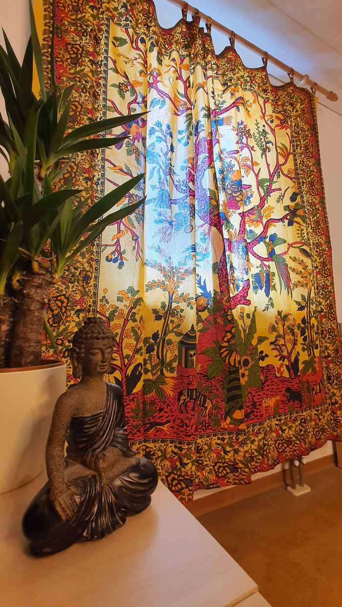 Bei Karmandala unterstützen wir traditionelles indisches Kunsthandwerk und die Menschen, die es ausüben. Dieser Lebensbaum-Vorhang wird in kleinen Werkstätten gefertigt, wo erfahrene Handwerker ihr Wissen in jedes Stück einfließen lassen. Mit deinem Kauf trägst du zur Bewahrung dieser wertvollen Tradition bei und holst dir ein Stück authentischer Handwerkskunst nach Hause.