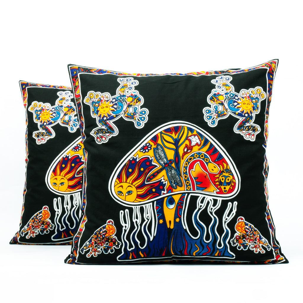 Kissen magischer Pilz schwarz bunt 2x 40x40 cm