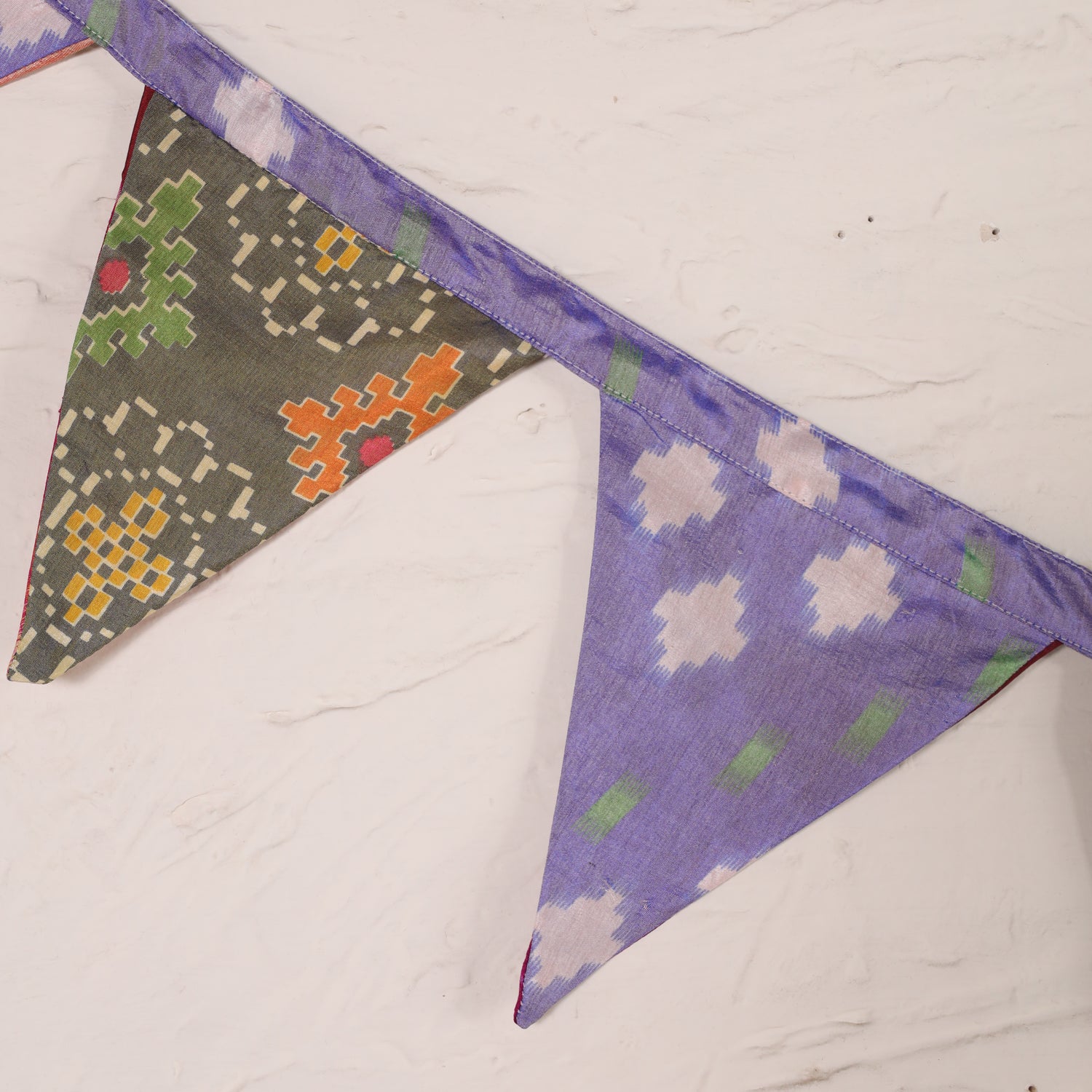 Produkt: Wimpelkette mit bunten Fähnchen aus recycelten Saris