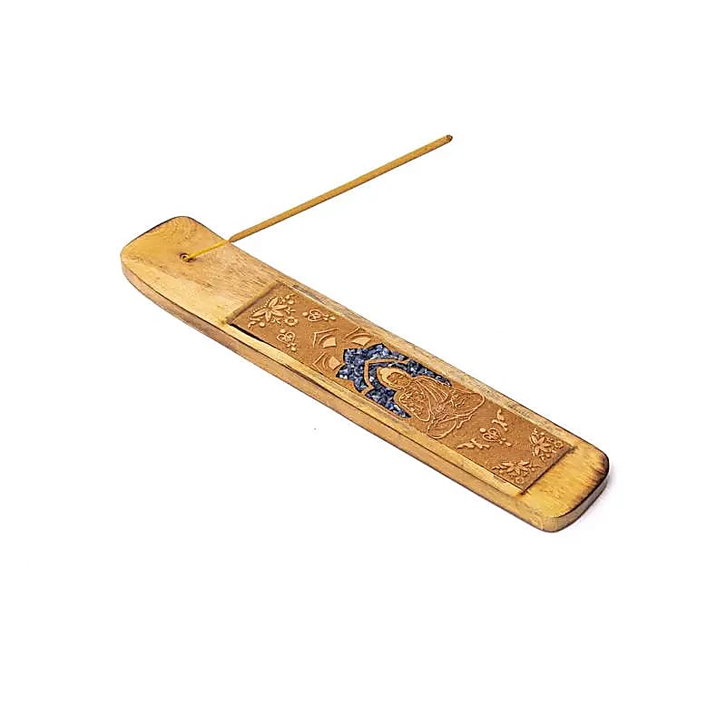 Dieser Räucherstäbchenhalter bringt die beruhigende Energie des Sodaliths und die inspirierende Präsenz des Buddha in deinen Raum.