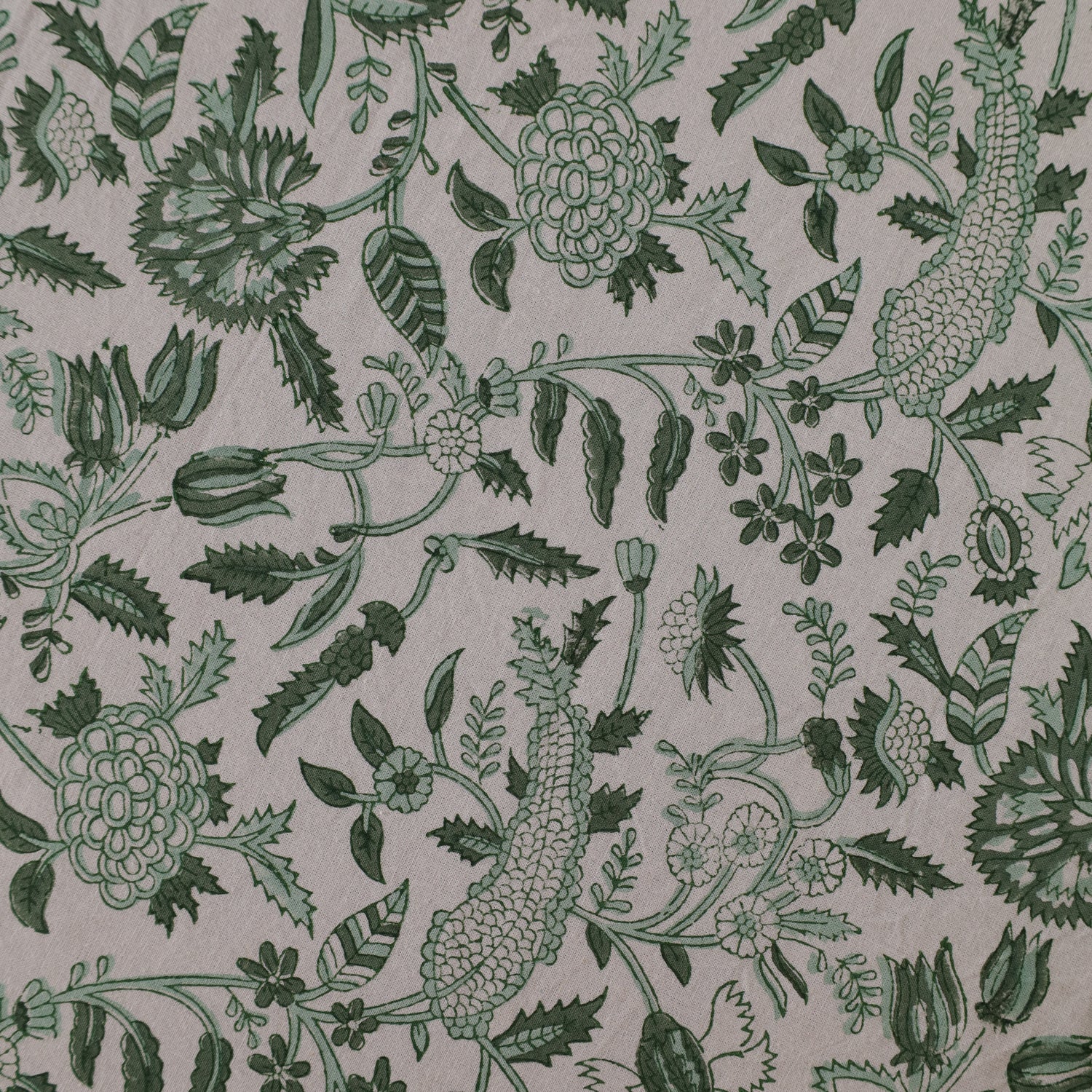 Die Tischdecke kann unkompliziert bei 30–40 °C in der Maschine gewaschen werden. Baumwolle bleibt strapazierfähig und formstabil – auch nach vielen Wäschen. Zum Schutz der Farben empfehlen wir, sie an der Luft trocknen zu lassen. So bleibt das grüne Blockdruck-Muster lange frisch und ausdrucksstark.