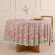 Runde Tischdecke aus Baumwolle mit indischem Blockdruck – Ranken in Orange und Grün