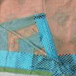 Sehr langer, orange blau gemusterter Sarong aus Viskose. Die Kanten sind teilweise nicht vernäht.