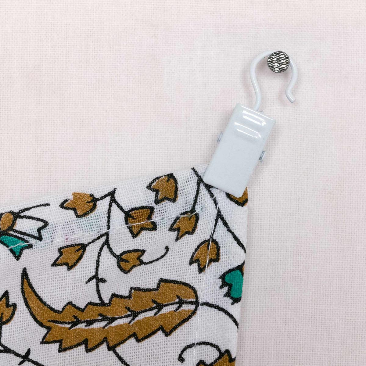 Besonders, wenn du dein Wandtuch an die Zimmerdecke hängen willst sind Gardinenklammern besonders praktisch. Wer dies schon mit Reißzwecken oder Nadeln probiert hat, hat vermutlich irgendwann frustriert aufgegeben.
