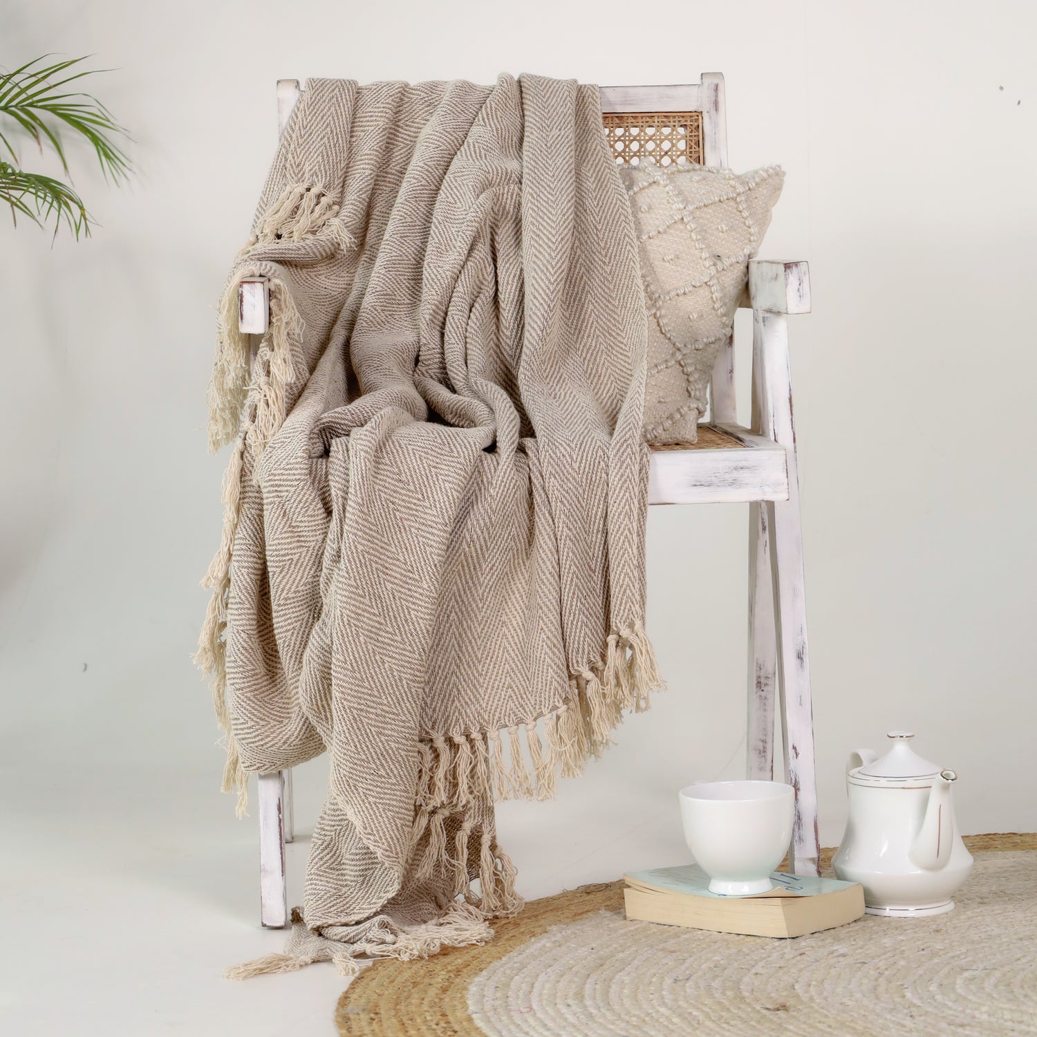 - Drapiere die Decke über einen Sessel für eine kuschelige Leseecke.
