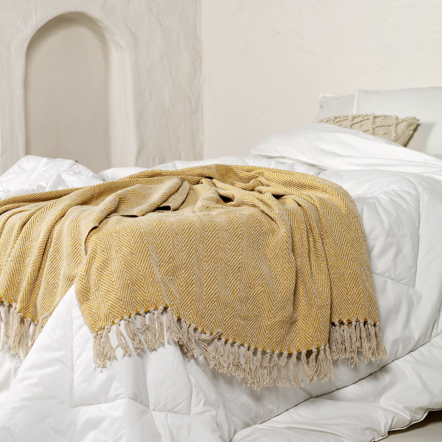 Hol dir die warme Eleganz Rajasthans mit unserer gewebten Tagesdecke Sikar direkt nach Hause! Diese wunderschöne Decke mit ihrem zarten beige-gelben Muster wird in Rajasthan von talentierten Kunsthandwerker*innen in traditioneller Handarbeit gefertigt. Hergestellt aus 100% weicher Baumwolle, bietet sie nicht nur höchsten Komfort, sondern bringt auch einen Hauch von natürlicher Leichtigkeit in dein Zuhause.