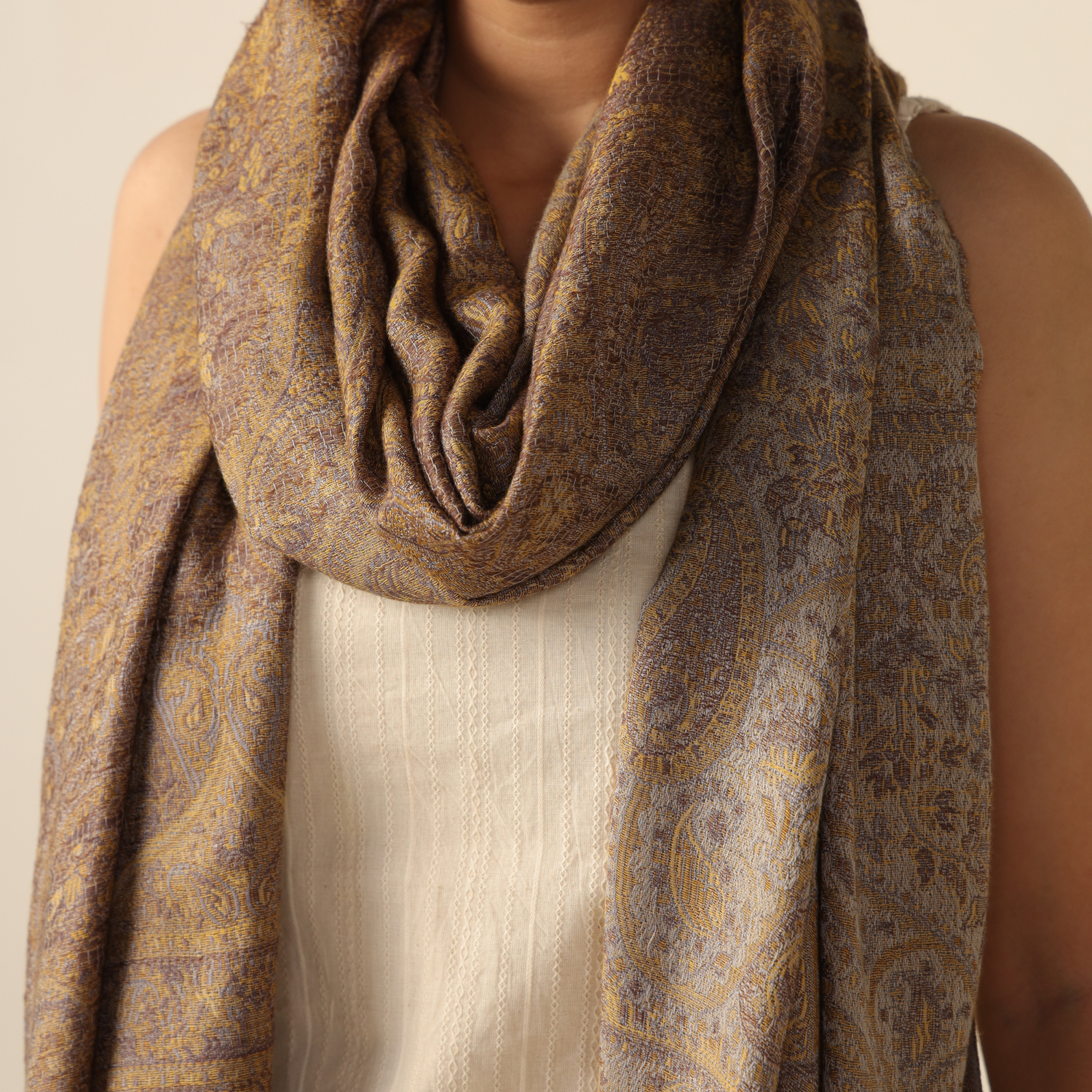 Indischer Schal in Braun-Grau mit Paisley-Muster – Wärme, Tiefe und Harmonie