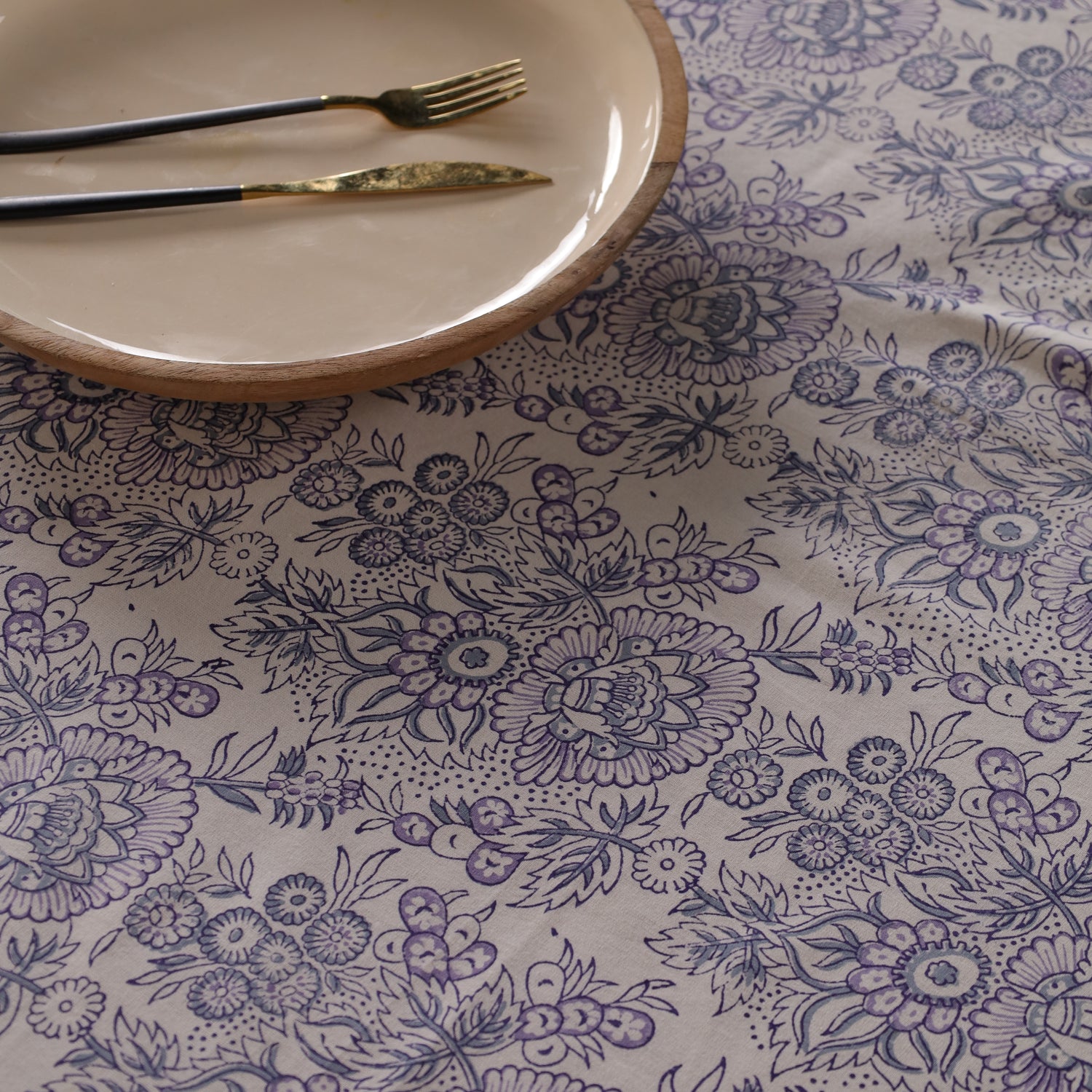 Beim Blockdruck wird das Muster mit handgeschnitzten Holzstempeln in mehreren Arbeitsschritten Schicht für Schicht aufgetragen. Diese Technik verlangt Erfahrung, Sorgfalt und Geduld. Kleine Unregelmäßigkeiten entstehen dabei ganz natürlich und machen jede Tischdecke einzigartig – ein lebendiges Kunstwerk statt maschineller Massenware.
