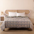 Die Decke besteht aus 100% Baumwolle – atmungsaktiv, weich und langlebig. Durch die detailreiche Hand-Steppung wird sie zusätzlich verstärkt und erhält ihre typische Struktur. So entsteht eine hochwertige indische Tagesdecke, die Tradition, Natürlichkeit und modernes Wohndesign harmonisch vereint.