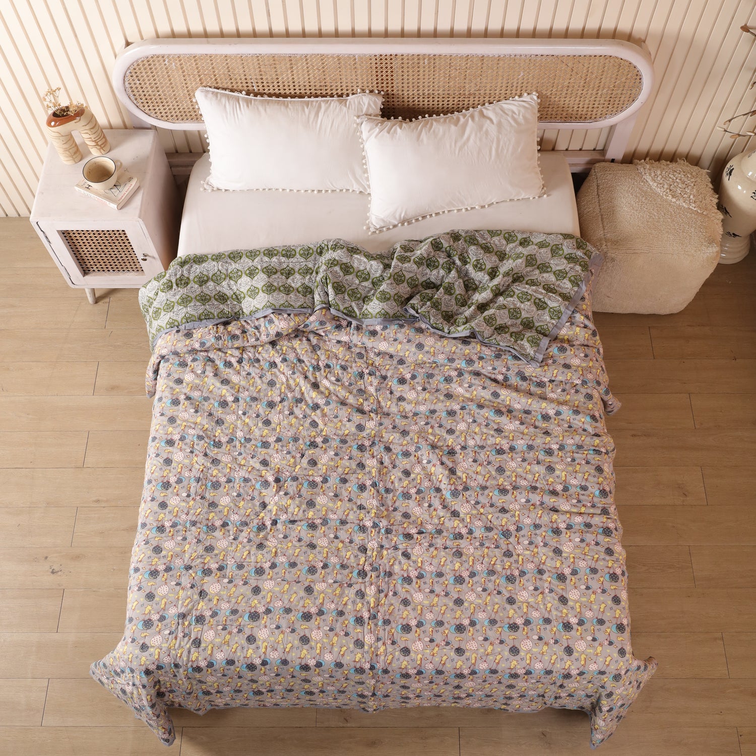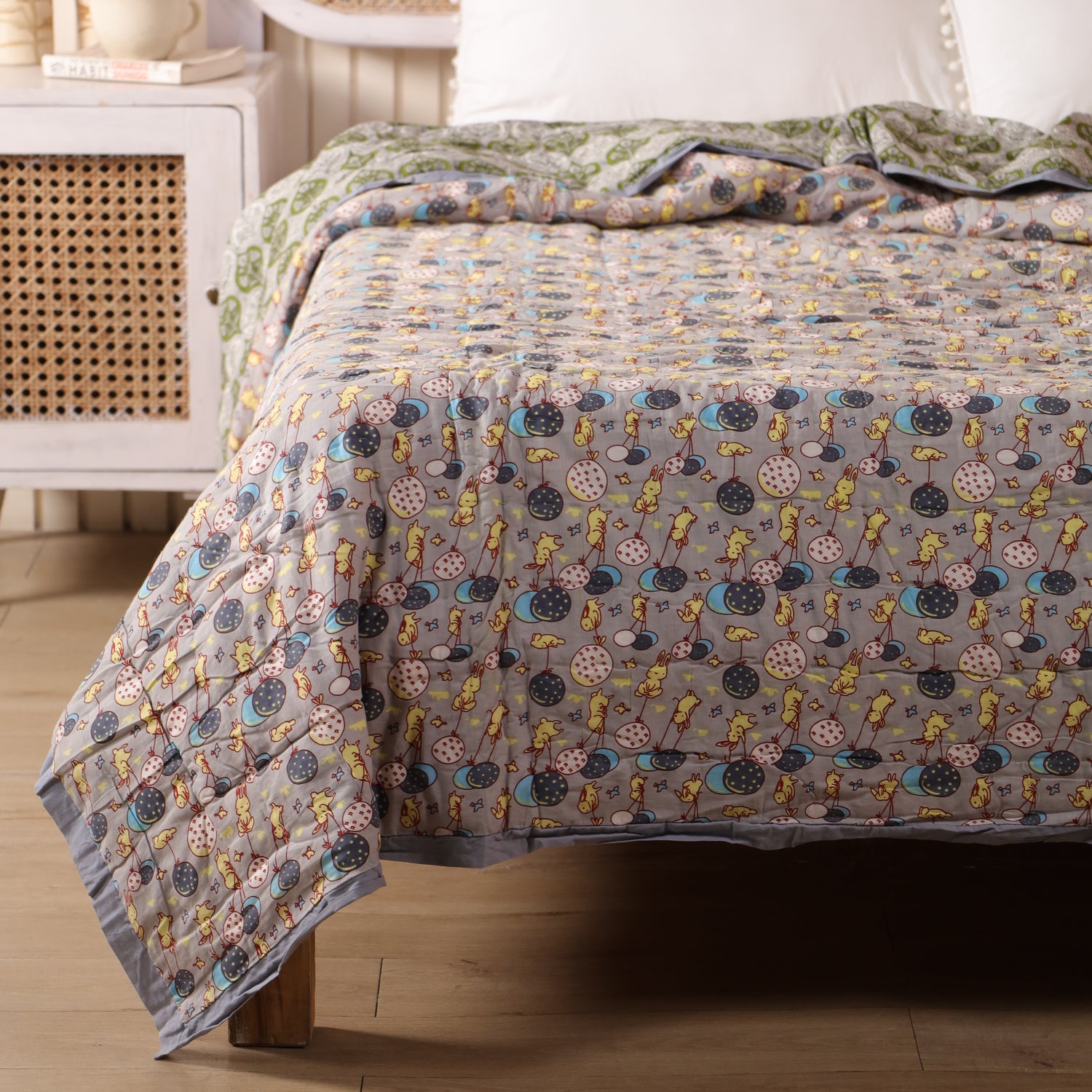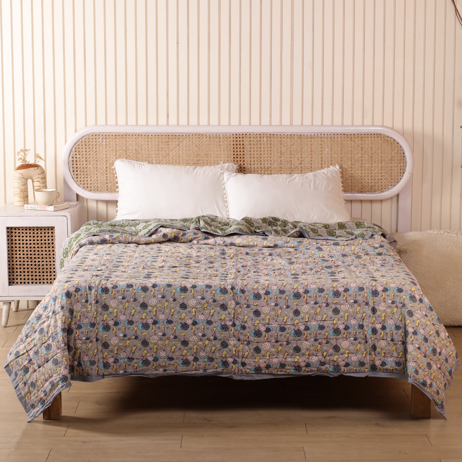 Die indische Tagesdecke Luftballon Grau verbindet modernes Design mit traditioneller Handwerkskunst. Das verspielte Luftballon-Muster in zarten Grautönen wirkt dezent und zugleich besonders – perfekt, um jedem Raum eine stilvolle, ruhige Atmosphäre zu verleihen. Als Bettüberwurf, Boho Decke oder leichte Sommerdecke sorgt sie für Gemütlichkeit mit Charakter.