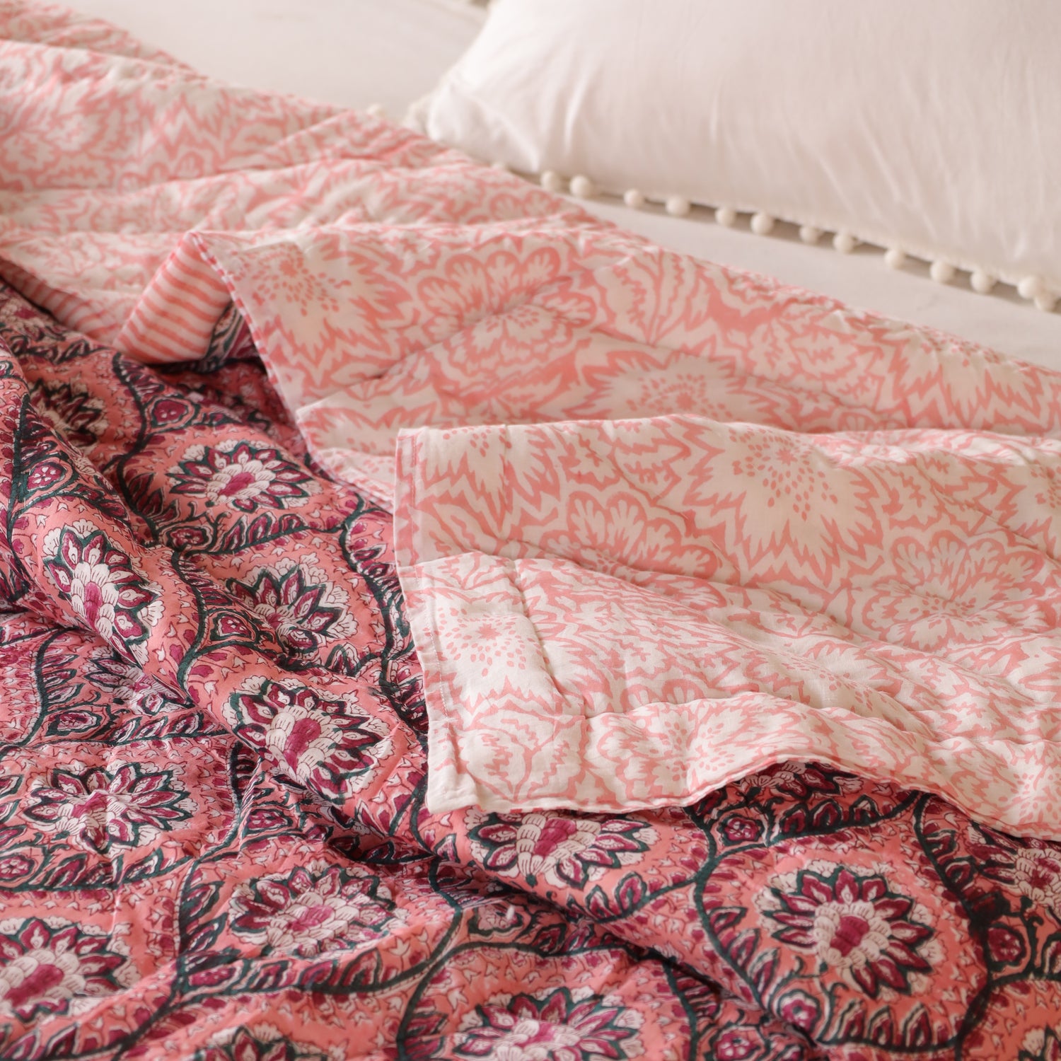 Technik: traditioneller Blockdruck, handgesteppt