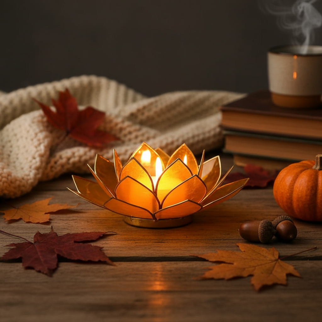 Teelichthalter mit Lotusmotiv – in strahlendem Gelb