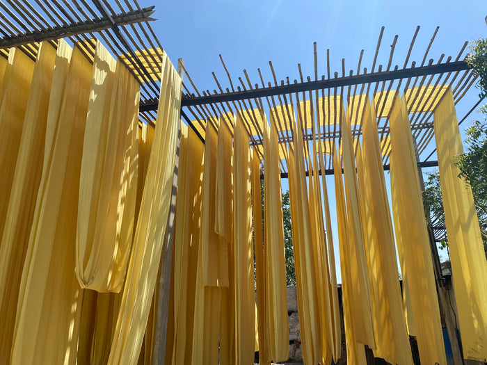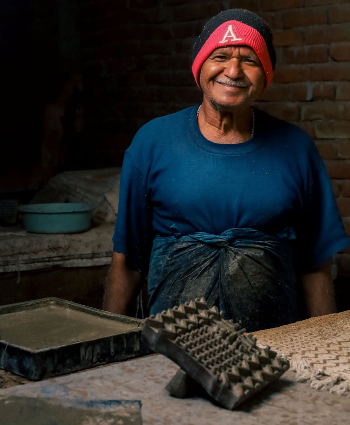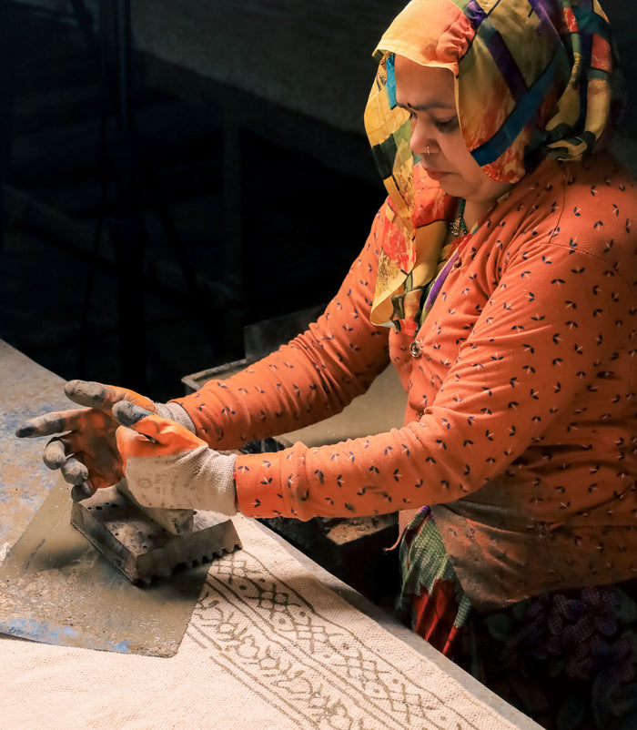 Hinter unseren Textilien stehen Menschen, keine Fließbänder. Viele unserer Produkte werden noch immer traditionell gefertigt – mit handgeschnitzten Holzstempeln im Blockdruck, von Hand gewebten Stoffen und schonend gefärbten Materialien.