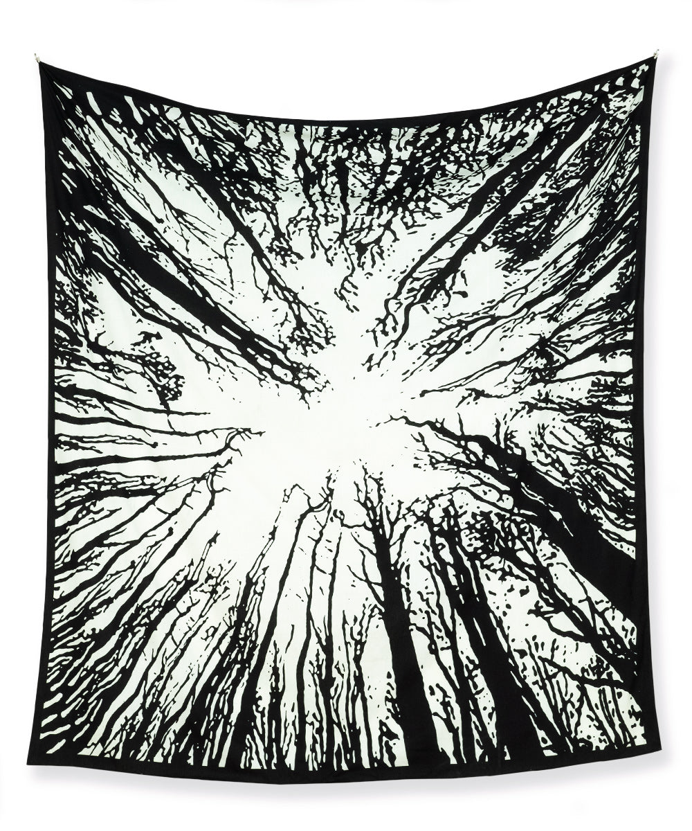 Wandtuch Wald Motiv Schwarz Weiß